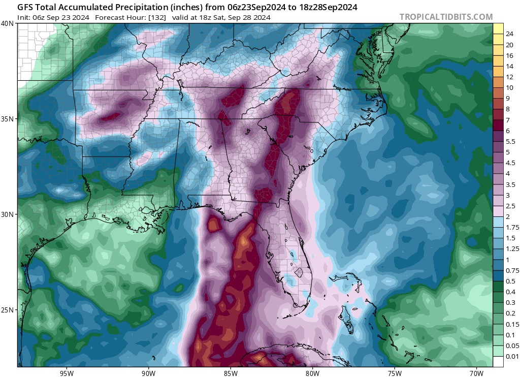Above is the potential flooding to Florida, Georgia, and the Carolinas.