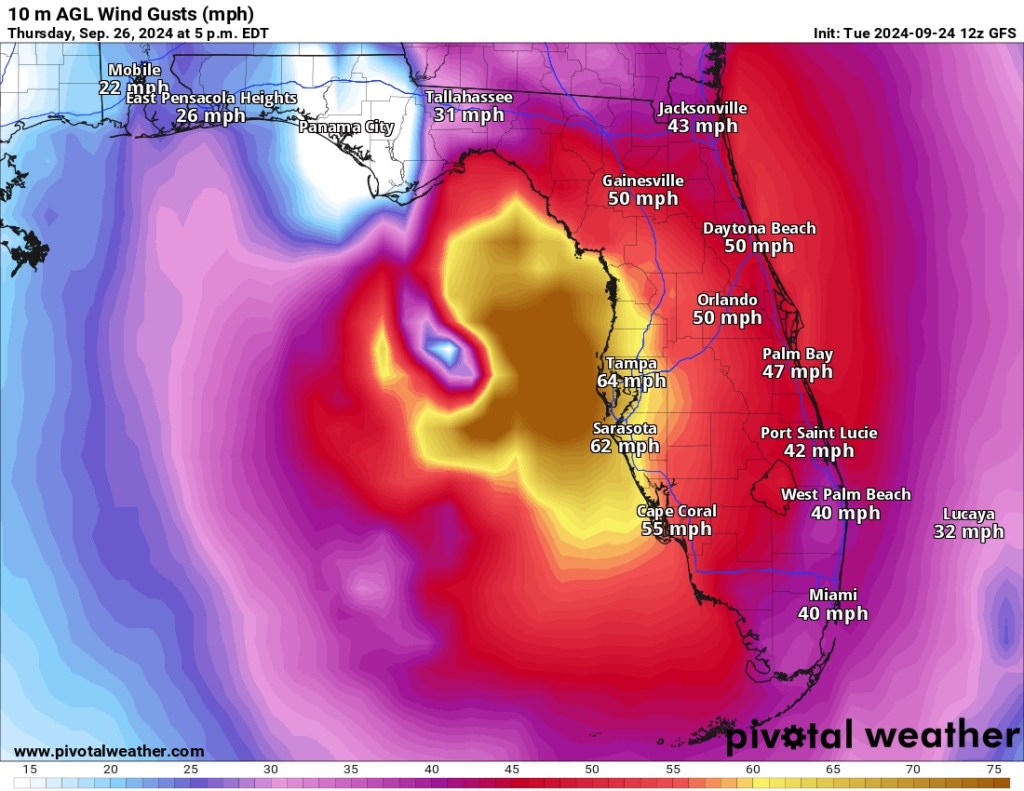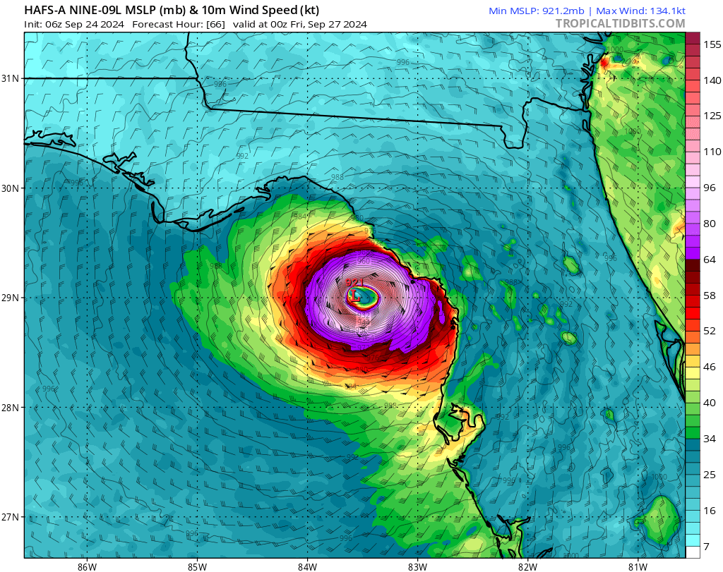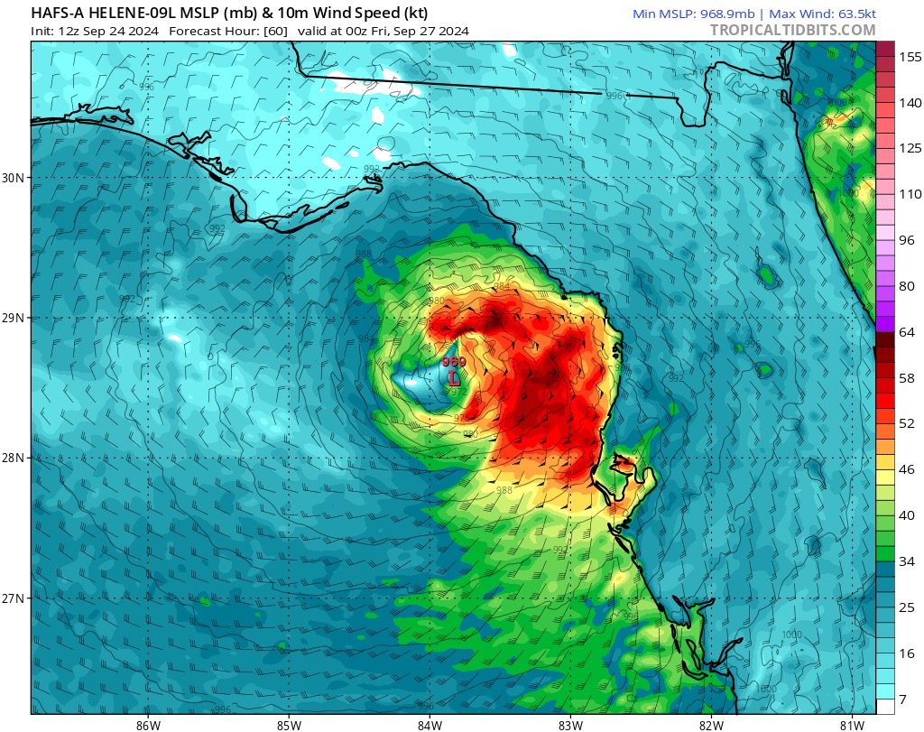 The above models show TS Helene landfall wind speeds in knots and MPH. The second image is only 6 hours later than the first, and predicts Helene will weaken when making landfall. The third image also shows some less powerful winds than expected. There still is time to gain strength in the Gulf and we will have to wait and see over the next 48 hours.
