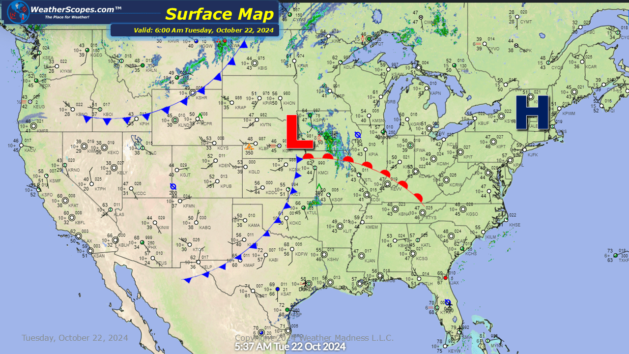Daily Maps Tuesday October 22nd, 2024 Some storms making their way off the Pacific into the NW, lingering storms from yesterday coming into the Midwest. Share this: Click to email a link to a friend (Opens in new window) Email Click to print (Opens in new window) Print Like Loading... Leave a comment Cancel reply Δ