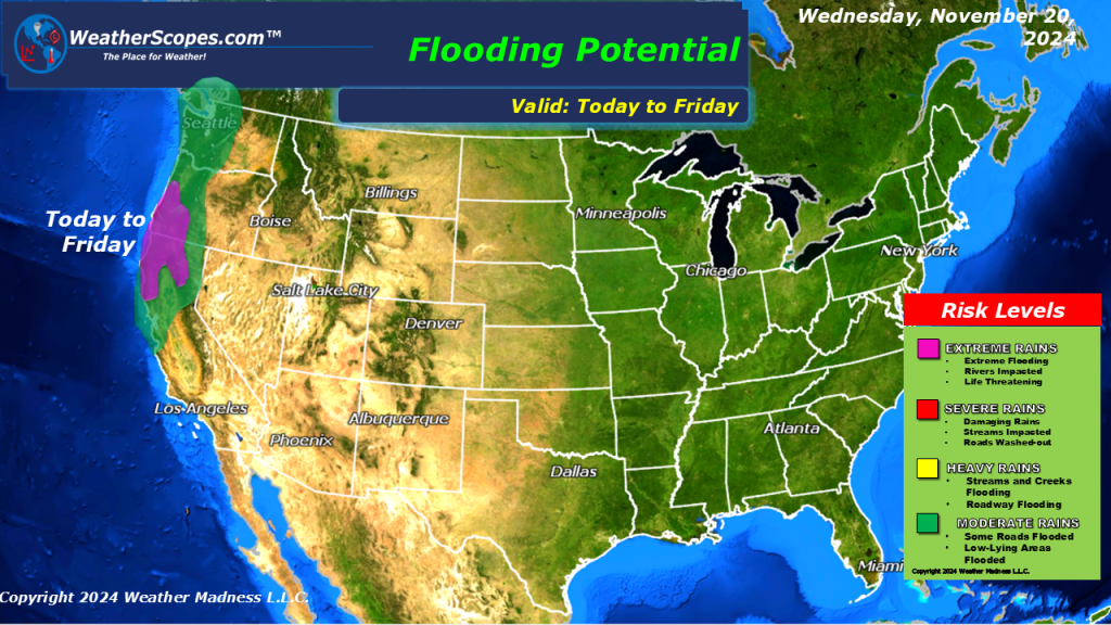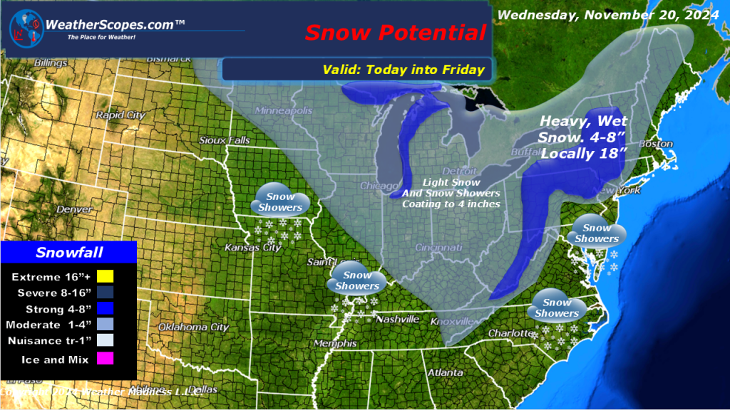 Heavy rains continue in the Pac NW, Some gusty storms will affect the NE and Carolinas, some accumulating snow will impact the Great Lakes.