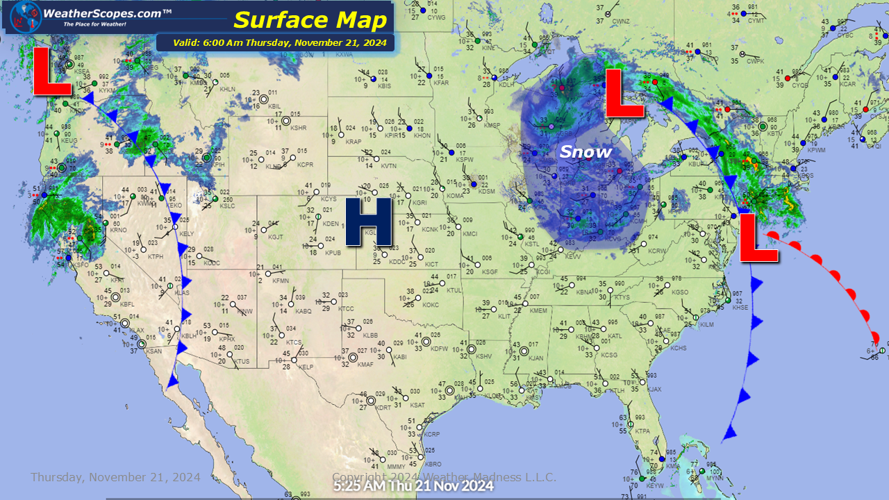 Snow will impact the Great Lakes, the Ohio Valley and move into the Northeast today bringing several inches of snow accumulation. The Pac NW still continues to deal with heavy rain and flooding.