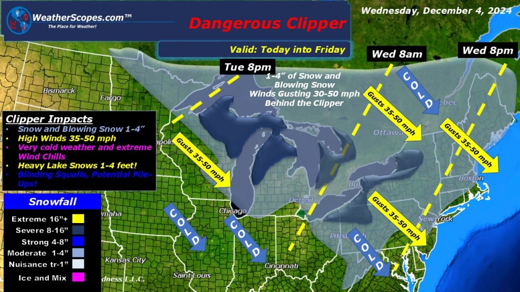 Daily Maps Wednesday December 4th, 2024 Blustery conditions today across the Great Lakes and parts of the Northeast with some snow accumulations and high winds. Share this: Click to email a link to a friend (Opens in new window) Email Click to print (Opens in new window) Print Like Loading... Leave a comment Cancel reply Δ