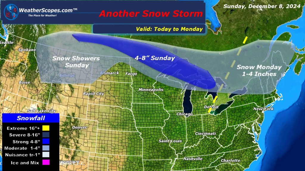 Rain showers in the Houston area, snow in parts of the Northeast and Maine today with 1-3”, some rain for the Upper Plains/Great Lakes turning into snow with some accumulation today of a dusting to 3”.