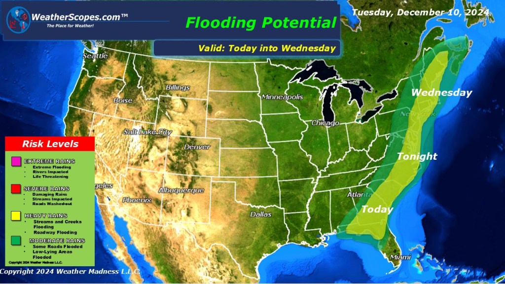 Cold air moving into the Plains and Midwest today. Snow showers in the Upper Plains with some light accumulation. Thunderstorms in the New Orleans/ Alabama area today, and will continue in the Southeast tomorrow with some heavy rain and possible gusty thunderstorms.
