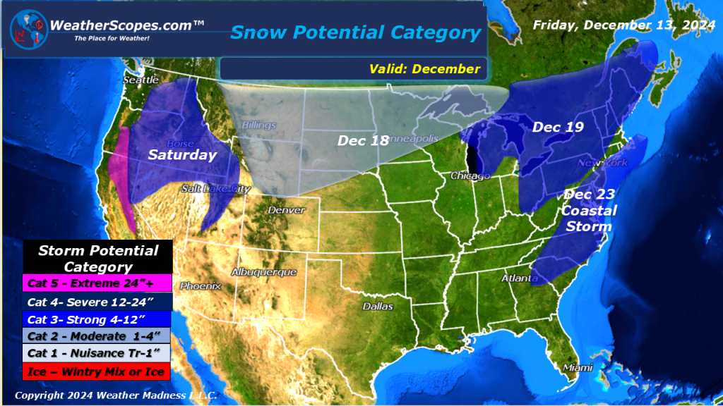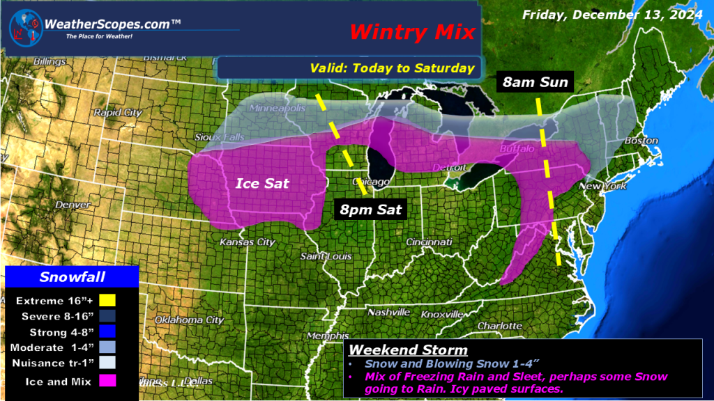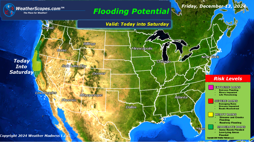 Heavy rain continues in Northern California with some areas looking at 2-3” of rain. Some lake effect snow in the Great Lakes and UP of Michigan. Cold, cold weather from the Plains to the Northeast.
