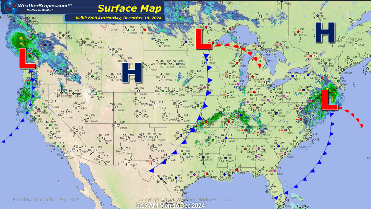Some snow today in the Upper Plains with some light accumulation. Some showers moving through the Ohio and Tennessee Valley today, with the chance for some gusty storms. Those storms will make their way into the Northeast tonight.