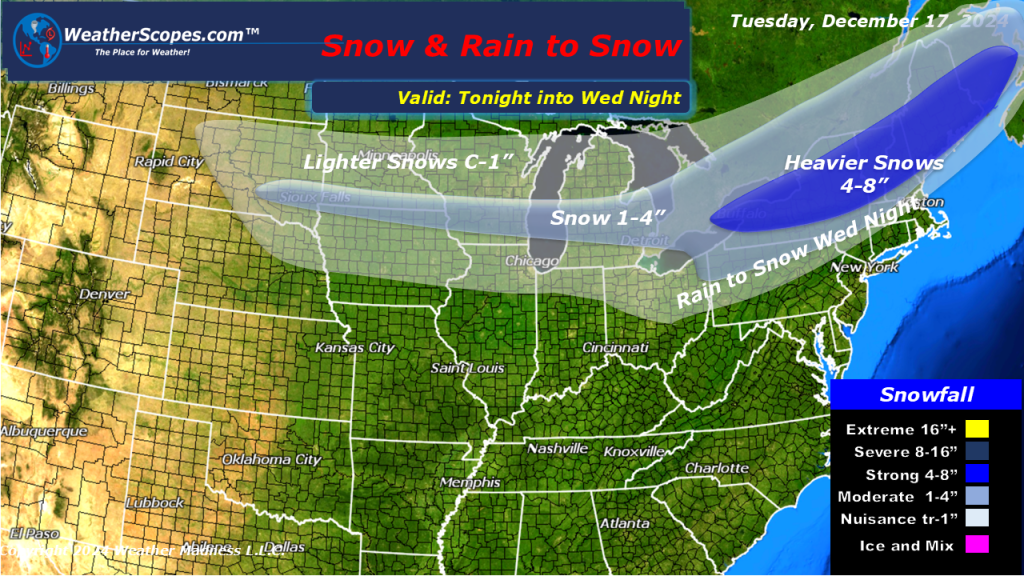 Some light snow in South Dakota moving to the East into the Ohio Valley tonight. Accumulations look to be a dusting to 2” closer to the South Dakota/ Minnesota border. Rains in the Pac NW today with around 2” of rain near the coast. Some storms look to develop later today around Southern Illinois and extend to the Tennessee Valley to the East all the way down to Texas to the West. Those storms have the potential to be severe.