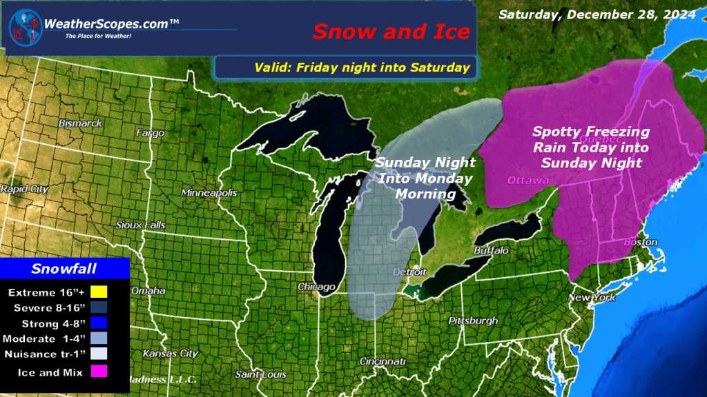 Today we’ll be watching the Lower Mississippi Valley and Louisiana for a tornado outbreak. Storms will develop in Eastern Texas and make their way into the Lower Mississippi Valley. Those storms will be severe and a few tornadoes are possible with the favorable conditions. Some Ice fell this morning in parts of the Northeast. Tonight into Sunday more ice is expected for areas of Eastern NY into Maine.