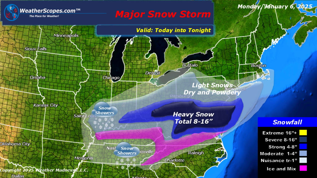 The snowstorm that mades its way through the Plains and Midwest yesterday now hitting the Northeast today. Heavy snow in the DC area with accumulations of 8-16”. Ice and sleet in the Tennessee Valley through Virginia and North Carolina. Moderate snow in the Ohio Valley into Pennsylvania and NY, with accumulations of 1-4”. Lake effect snow and some mixed precipitation impacting the Chicago/Milwaukee area today with accumulations of 1-3”. Rain and some gusty storms south of the snowstorm today, from South Carolina to Florida. Some of those storms could be severe.