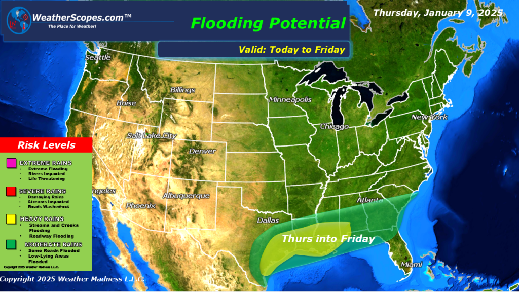 Snow in Texas today! Snow near the DFW area / Oklahoma border that will produce 4-6” of snow. To the south of the DFW area will be the chance for mixed precipitation and some ice accumulations, making for dangerous travel. That system will move to the East through the Mississippi and Tennessee Valleys today into tomorrow. Near the Gulf Coast states some heavy rains will come with this storm, causing the potential for some flooding.