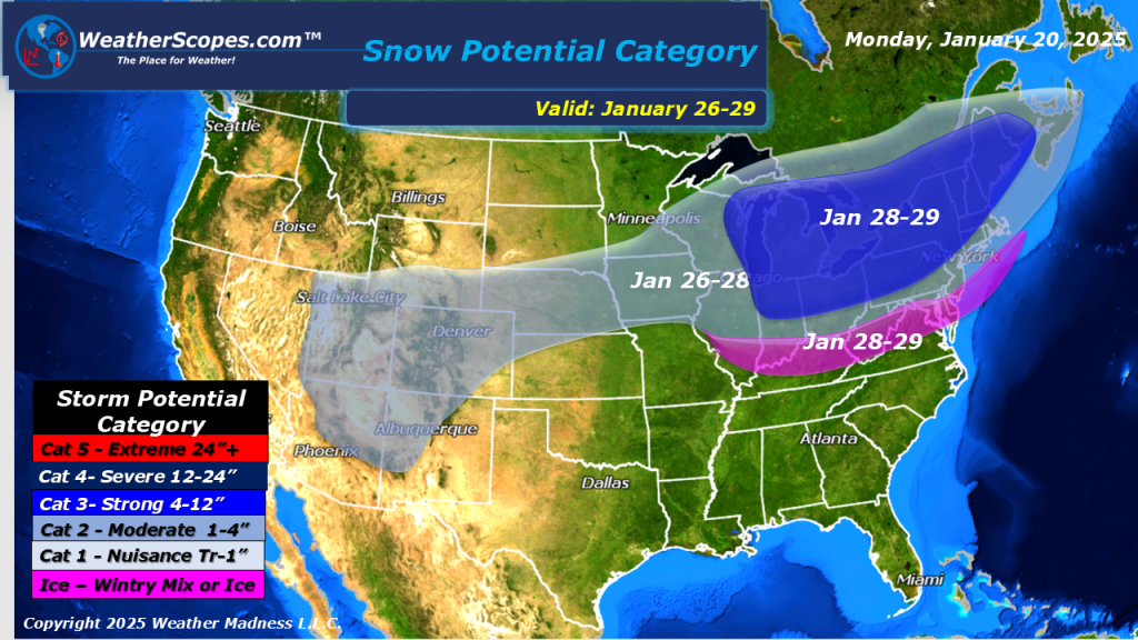 Dangerous cold and wind chills over the Plains, Midwest, and into the Northeast. Some lake effect snow in the Great Lakes, accumulations look to be 3”+