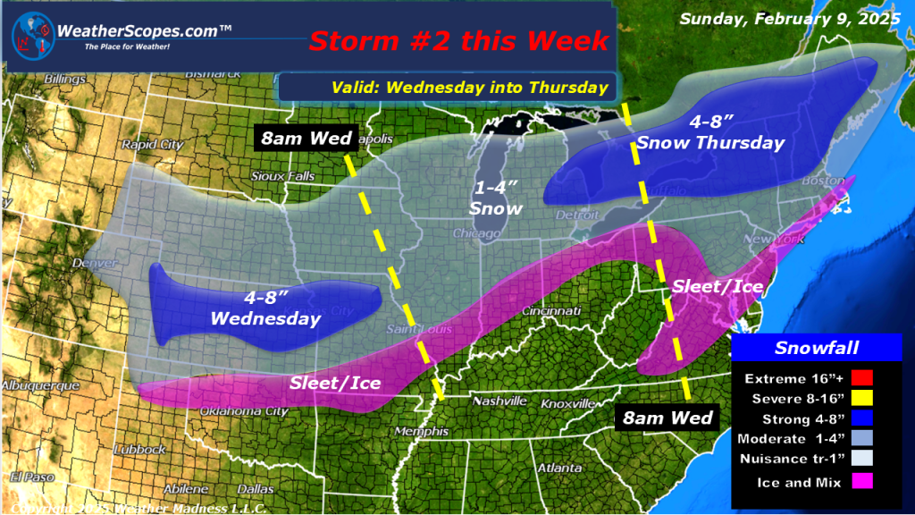 Some lingering snow in the Northeast from the system that came through yesterday, and some light accumulating snow throughout the Great Lakes. The Great Lakes will see a dusting today while this week could bring some significant snow. Accumulations today for the Northeast look to be a coating and around 3-6” total for the Boston area. Some lake effect snow will also impact parts of the Northeast over the next few days with some higher amounts around the Syracuse area. Syracuse could see over 6” while the rest of the interior parts of the Northeast could see anywhere from 1-4” over the next few days, before we get a few snow storms that will roll on through.