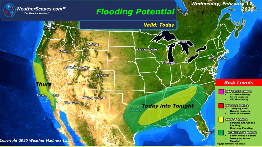Our second snowstorm of the week is making its way through the Plains and Midwest. It will continue to move to the east and impact the Great Lakes and Northeast. Heaviest accumulations look to be 4-8” for portions of Kansas to the Great Lakes and into the Northeast, and some areas of the interior areas of the Northeast seeing 8”+. The rest will see 1-4” of snow. South of the snow you will see some mixed precipitation with sleet and ice, from portions of Missouri through the Ohio Valley and into the Virginia’s. In the Southeast heavy rains today with some of those storms becoming severe.