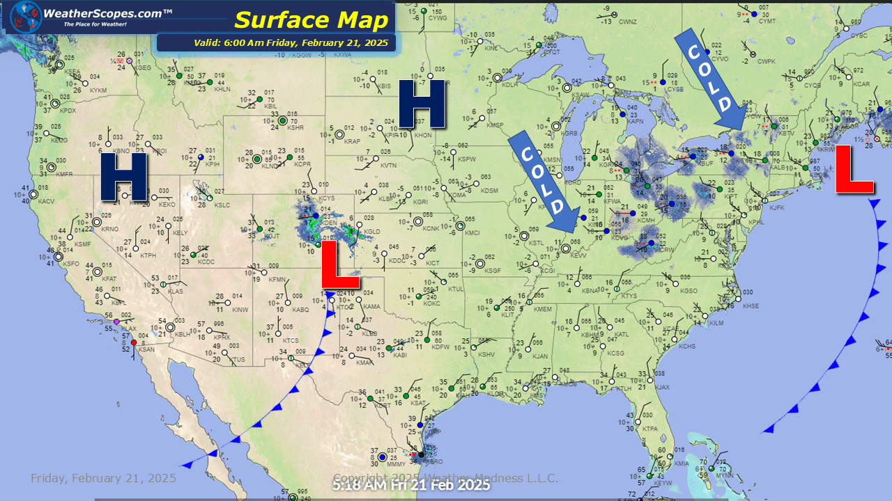 The Plains and Great Lakes still dealing with some cold temps to start the day. Some snow going through parts of the Great Lakes and into the Northeast with accumulations of a coating to a 1”. The Denver area seeing some snow, and have been since last night. Accumulations look to be around 3-6” with heavier snow further West and South.