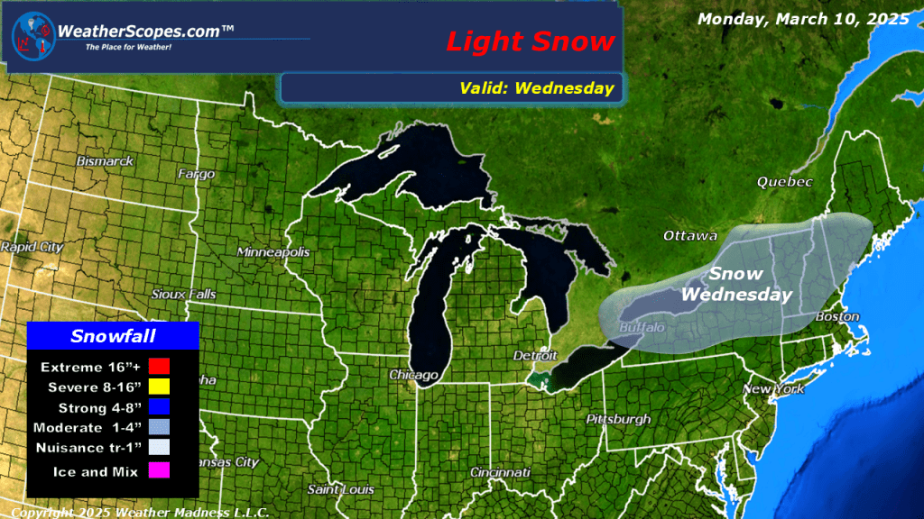 An overall nice day across the US today with mild temps. Showers and thunderstorms moving across the Southeast and Florida this morning. Some of those storms have become severe as they move across the area. Snow showers moving across Maine this morning, accumulations look to be around 1-2”.