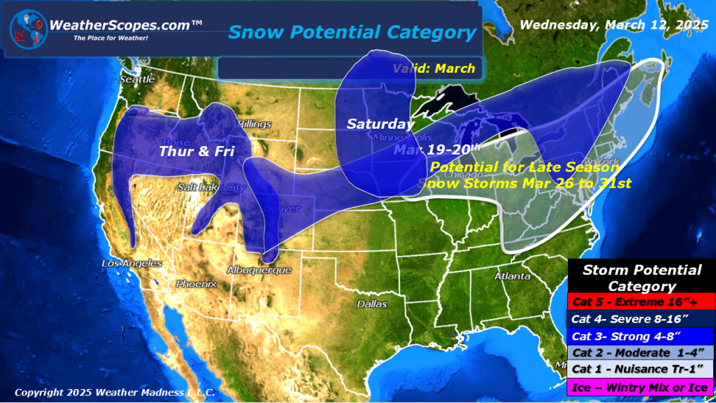 Another nice day across most of the US. Some light snow will move through parts of the Northeast today with accumulations of a coating to a 1”. Some severe storms will develop later today across Northern Texas and Oklahoma, as they move to the East into the Mississippi Valley. We may see a tornado out of the storm, but mainly gusty winds and potentially hail.