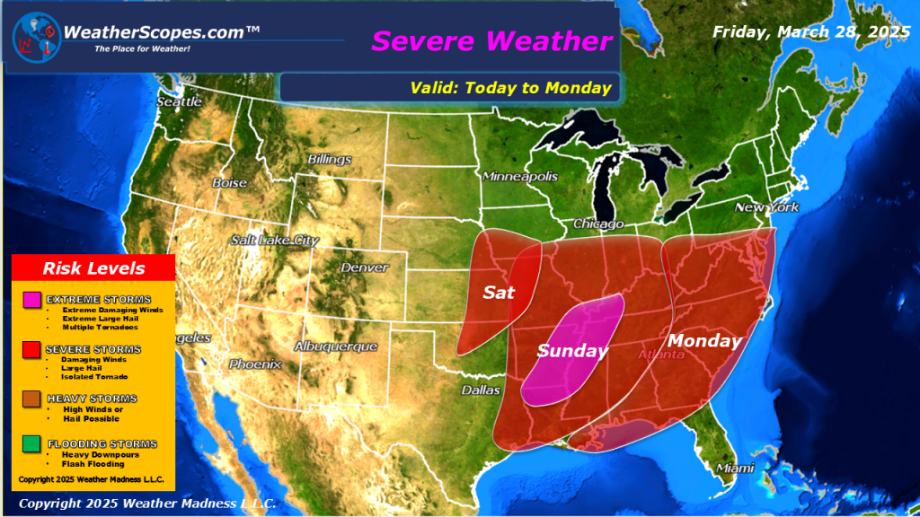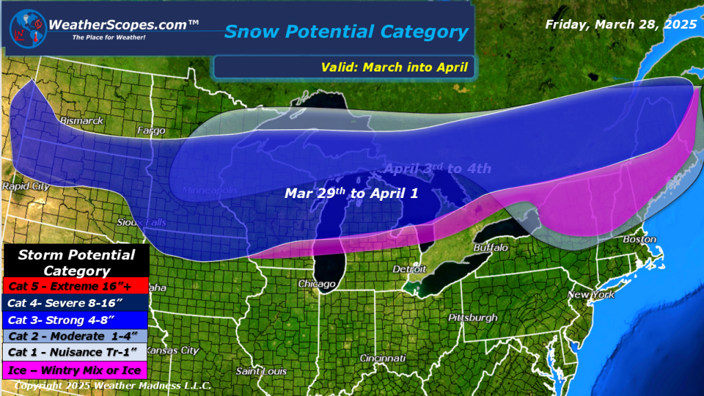 Some rain and thunderstorms moving through the Midwest and Southern Texas today. Southern Texas once again dealing with heavy rains and localized flooding. Rain in the Pacific NW, and snow in parts of Maine today with accumulations of a dusting. Later tonight some more snow and rain moves into the Northeast. Parts of upstate NY, Vermont, New Hampshire, and parts of Maine could see 1-4”. Milder temperatures today for most of the US.