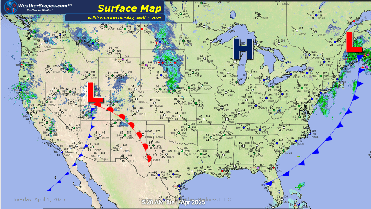 Snow in the Northern Plains today with accumulations of 1-4” with some areas seeing over 4” along the ND and SD border. Later today some storms will develop in the Central Plains and produce some severe storms. Wind, hail, and tornadoes will be the impacts from these storms. Cooler temps in the Plains, Great Lakes, and Northeast today, where we will see temps in the 30’s and 40’s. The warmer weather hanging out further south.