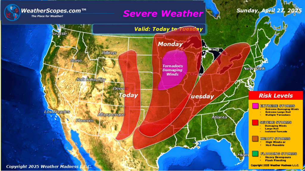 Today we already have some showers in the Northern Great Lakes, the Mississippi Valley and in parts of the Northeast. More storms will fire up later today out across the Plains into Oklahoma and Texas as the dry line still continues to produce severe weather. A warm day across the country. Some cooler temps in the Northeast and in parts of the Northern Plains into the Great Lakes. Should be an interesting day or two with some strong severe weather coming up.
