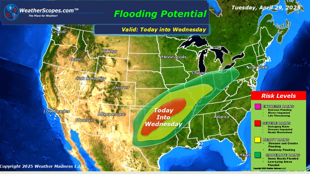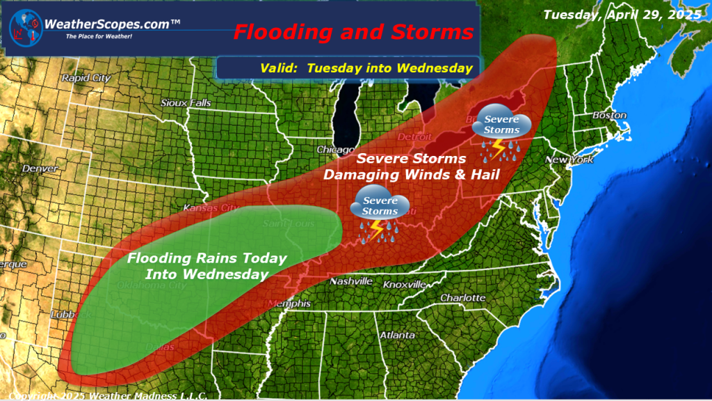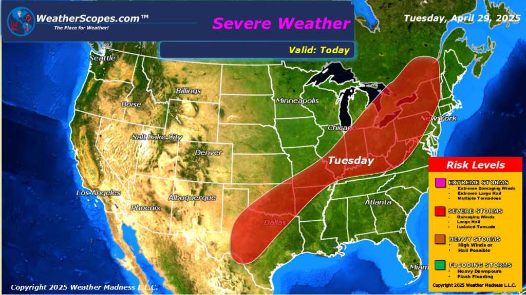 Another day of severe weather from NY down to Texas. Storms are already developing in Oklahoma this morning and will continue throughout the day. The strongest storms will be along the Ohio and Tennessee Valleys down into parts of Oklahoma and Texas. Damaging winds, hail, and tornadoes are possible today, as dew points will be in the high 60’s today. The Midwest, Great Lakes, parts of the Northeast and Plains will continue to deal with some windy conditions today, with gusts around 30mph. Localized flooding will also be a concern today in the affected areas of severe weather, and especially in parts of Texas and the Mississippi Valley which could see over 3-4” of rain over the next few days.