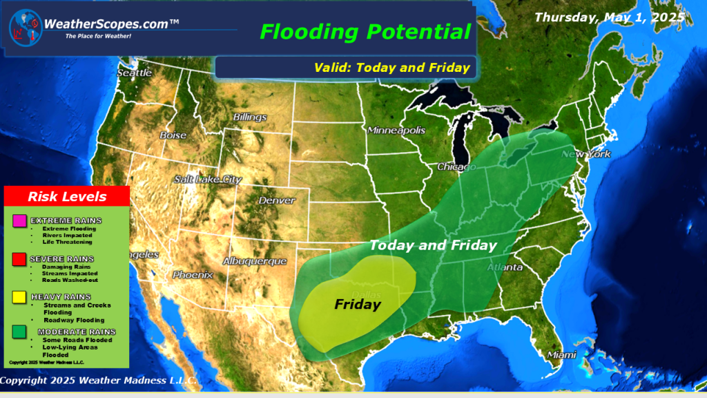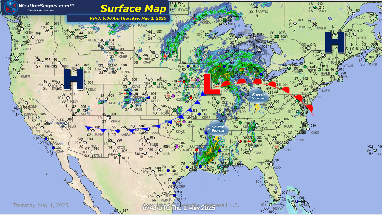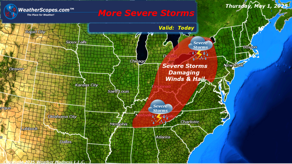 Some rain and thunderstorms making their way out of the Midwest and into the Northern Great Lakes this morning. More storms will develop later today across parts of the Northeast and stretch down into Texas and Louisiana. Damaging winds and hail will be in play with these storms. Localized flooding will also be a concern through parts of the Northeast through the Tennessee and Mississippi Valleys and into Texas, as several inches of rain has fallen over the last few days. Cooler weather across the Northern Plains into parts of the Great Lakes today, with the warmth further south.