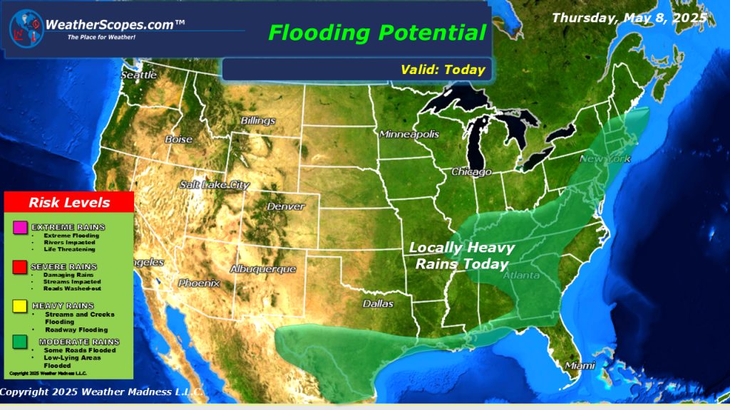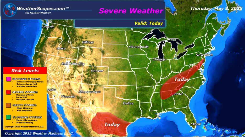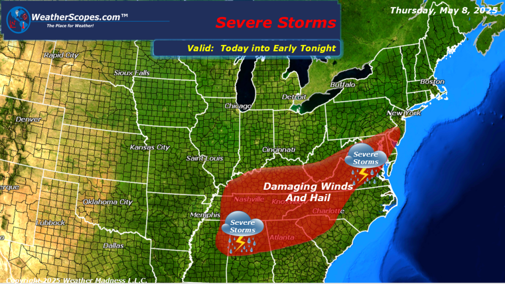 Today showers and thunderstorms across the Tennessee Valley into parts of the Northeast, as well as southern Texas. Across the Tennessee Valley damaging winds and hail will be the biggest threat. Localized flooding will also be something to watch as these areas have seen a decent amount of rain over the last few days. Some cooler temps across the Great Lakes and into the Northeast, with the rest of the US seeing some milder temps.