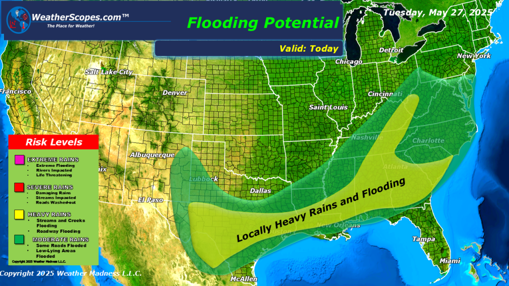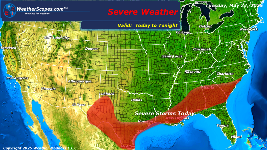 This morning some showers out across the Plains into parts of the Great Lakes and Mid-Atlantic states. Showers and thunderstorms are also developing in Southern Texas through Louisiana and the Southeast. Some of those storms will be severe and bring some heavy rains. We will have to watch out for some localized flooding as well. The rest of the US looks a bit milder compared to last week, with certain areas in the Plains and Mid-Atlantic states, where they will see some cooler temps today. Also as the season starts keeping an eye on anything developing in the tropics.