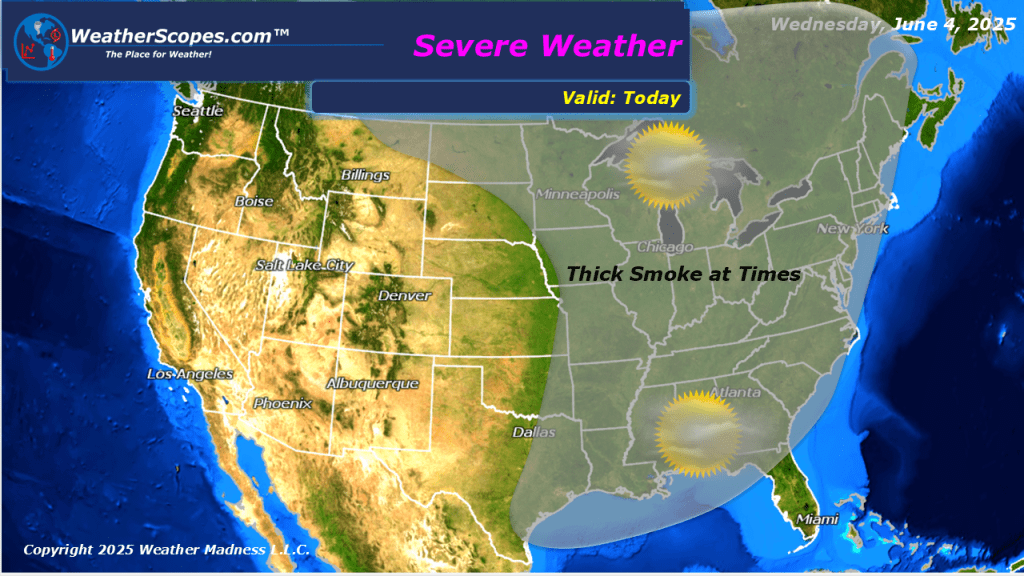 Showers and thunderstorms this morning out across the Great Lakes down into the Upper Mississippi Valley. Those showers will continue for most of the day. Some storms develop later in the day across Western Texas. Some of those storms could be severe. The four corners states continue to see some showers today, and could see some heavy rains at times. The wildfire smoke from Canada continues for much of the Eastern part of the US.