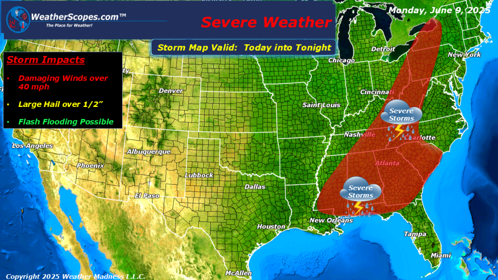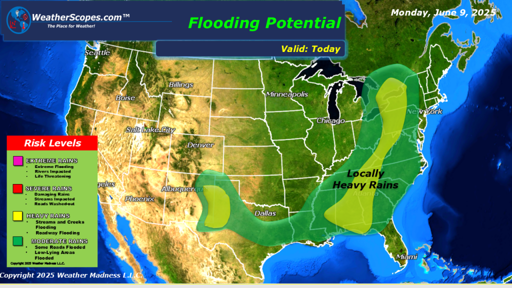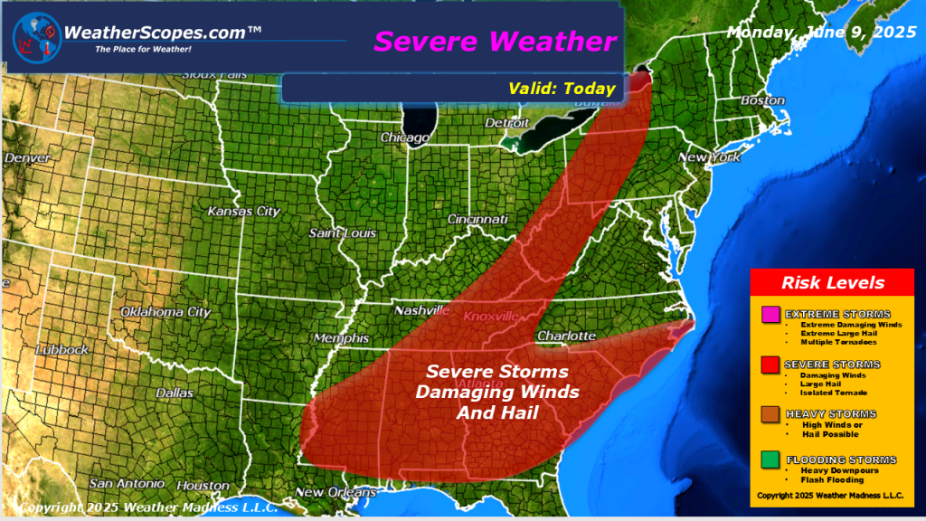 Today we’ll see storms come through parts of the Northeast down through the Tennessee Valley and into the Southeast today. these storms will bring heavy rains, gusty conditions, hail, and a possible tornado can’t be ruled out. With the heavy rains in some areas we will have to be on the watch for some localized flooding. Later tonight more storms will develop in Western and the Eastern portions of Texas. These storms look to be severe and produce all hazards going into the overnight hours. We are still seeing poor air quality for much of the eastern part of the country, from the Canadian wildfire smoke coming down.