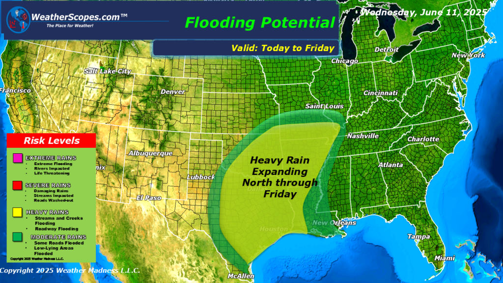 Today showers and thunderstorms will continue in Texas as they have been dealing with storms daily. With the rain flooding with also be an issue to parts of Texas and parts of the Mississippi Valley. Some of those storms in Texas could be severe later. Later tonight storms will develop in the Plains and move into the Upper Great Lakes overnight. Some of those storms could become severe. The Midwest into some parts of the Northeast still dealing with some air quality issues from the Canadian Wildfires.
