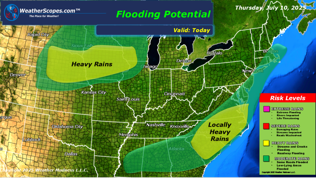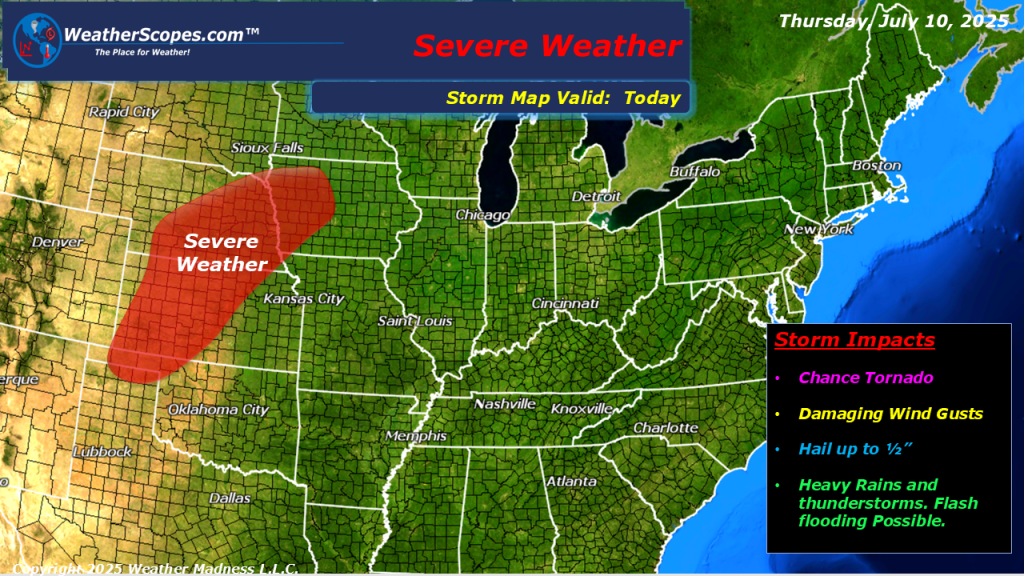 Today we will see some storms develop in parts of Iowa into Nebraska and Kansas, and look to be severe. These storms will bring heavy rain, hail, gusty conditions, and the possibility of tornadoes. The Southeast looks to see some showers and thunderstorms as well today, but they don’t look to be severe. With the rains in the Southeast, there could be some localized flooding in some areas. Nothing going on in the tropics currently.