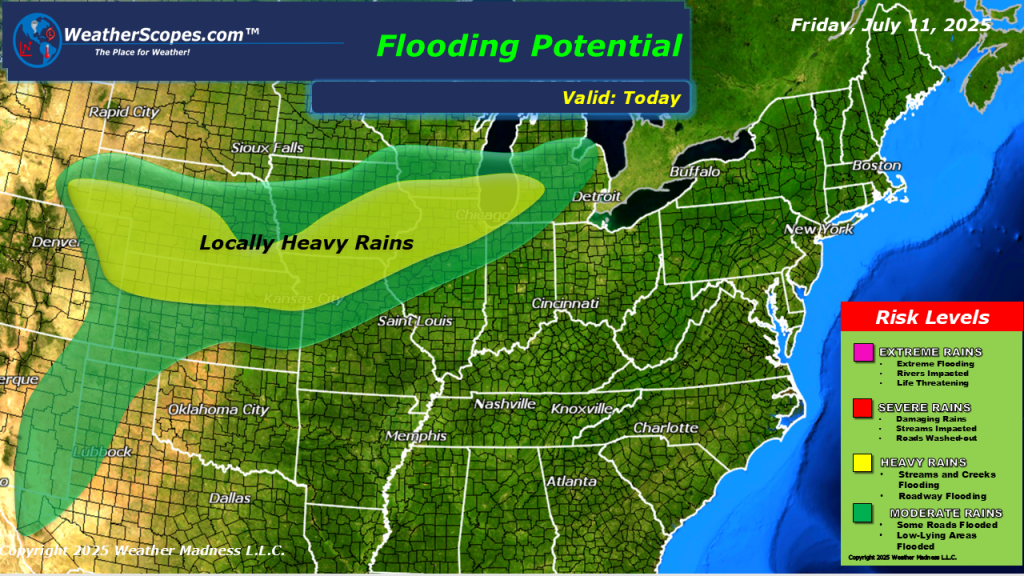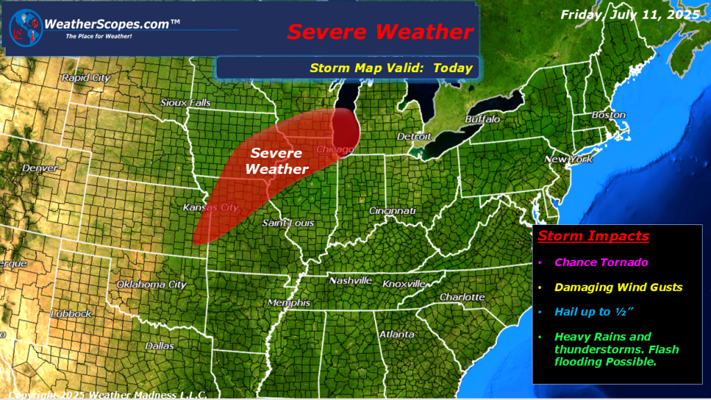 This morning we are already seeing more showers and thunderstorms across parts of the Midwest, that produced some heavy rains last night. More of the same today as severe weather will impact parts of the Midwest, Upper Great Lakes, and in the Plains today. More localized flooding is possible today. Showers and thunderstorms will also develop in the Mid-Atlantic states as well as in parts of the Southeast today. Nothing going on in the tropics.