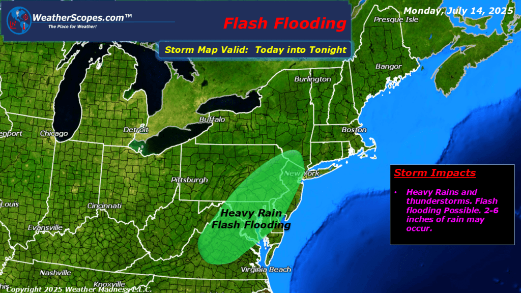 Today we will see some showers and thunderstorms in the Northern Plains into the Upper Great Lakes, as well as, in parts of the Northeast down into the Mid-Atlantic states and Ohio Valley. With these storms some heavy rains will impact parts of the Mid-Atlantic States and could cause some localized flooding. Some heavy showers in Texas again today, with some areas of Central Texas seeing heavy downpours and 1-2” of rain. Hot weather out across most of the US today, with areas in the NE seeing some cooler temps.