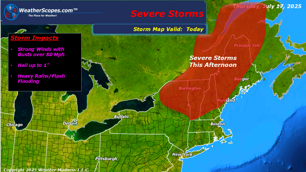 Today some gusty storms will develop in the Central Plains extending to the East into the Ohio Valley, and bringing some heavy downpours. We could see some localized flooding in those areas as well today. Parts of the Northeast will see some severe storms develop later in the day, also bringing some gusty conditions and some hail. The Four Corners states will see some showers and thunderstorms today as a monsoonal flow continues in the area bringing daily rains.