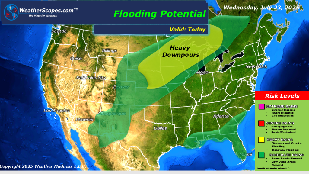 Today storms will develop in the Upper Great Lakes into the Plains, and parts of the SW. Gusty storms, hail, and tornadoes will be possible in the Upper Great Lakes through The Plains. Along with the storms, hot and humid conditions will impact the Plains, Midwest, and Texas. Temperatures look to be in the upper 90’s to some areas seeing over 100 degrees. With the hot temps the humidity in some areas will feel like the tropics, with high dew point temps. Heat indices in the Plains, Texas, and Midwest could be well over 100 degrees. Heavy rains will also be something to watch for in the Plains and Midwest, some localized flooding could be an issue.