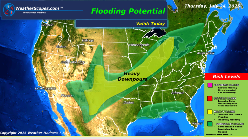 Today we will see some gusty storms develop from the Upper Great Lakes into the Plains, and parts of the West. Some heavy downpours will also be associated with these developing storms today. We can also expect some localized flooding in these areas. Hot and humid conditions continue today across the Midwest, Plains, and Texas with temps in the upper 90’s and some areas seeing over 100 degrees. In Gulf Coast over the next few days we will be watching a low-pressure system that will bring some significant rainfall and gusty winds to the area.