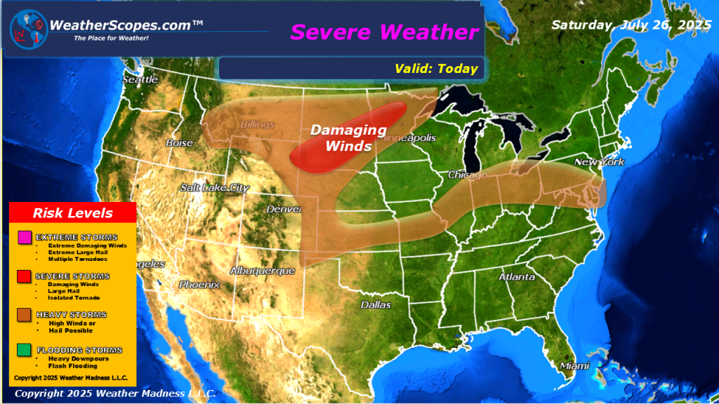 Today showers and thunderstorms will develop in the Midwest through the Ohio Valley and into parts of the NE and Mid-Atlantic states. Those areas could see some gusty storms, as well as, some heavy downpours. More storms will develop out in the Plains with those storms being severe. Damaging winds and heavy rains will be the main hazard out in the Plains. Showers and thunderstorms along the Gulf coast near Texas and Louisiana today, from a low-pressure system moving through. Heavy rains and some localized flooding could be an issue down in Texas and Louisiana today. Hot and humid conditions throughout most of the US today.