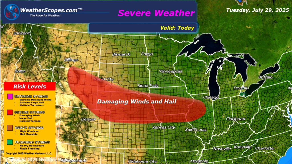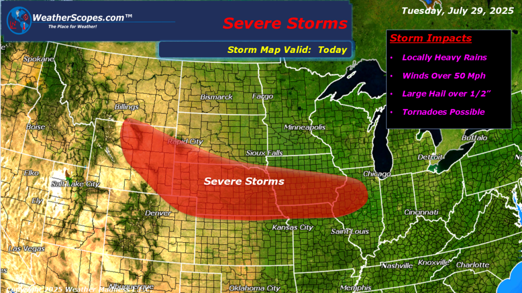 Today more storms look to develop in the Central Plains. These storms will be severe and bring hail, gusty conditions, heavy downpours, and a tornado can’t be ruled out. The dew point temps will be high in the Plains today, creating the right conditions for a tornado or two. With the heavy downpours localized flooding is also a concern. Still seeing towards the end of the week the eastern part of the US will enjoy some cooler temps and less humidity, while the west will be hot and dry.
