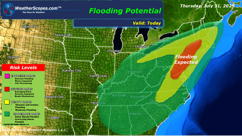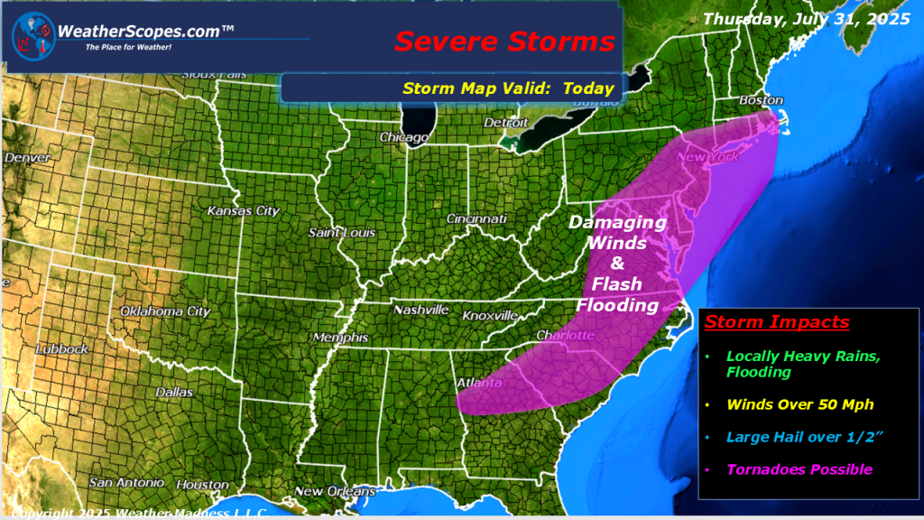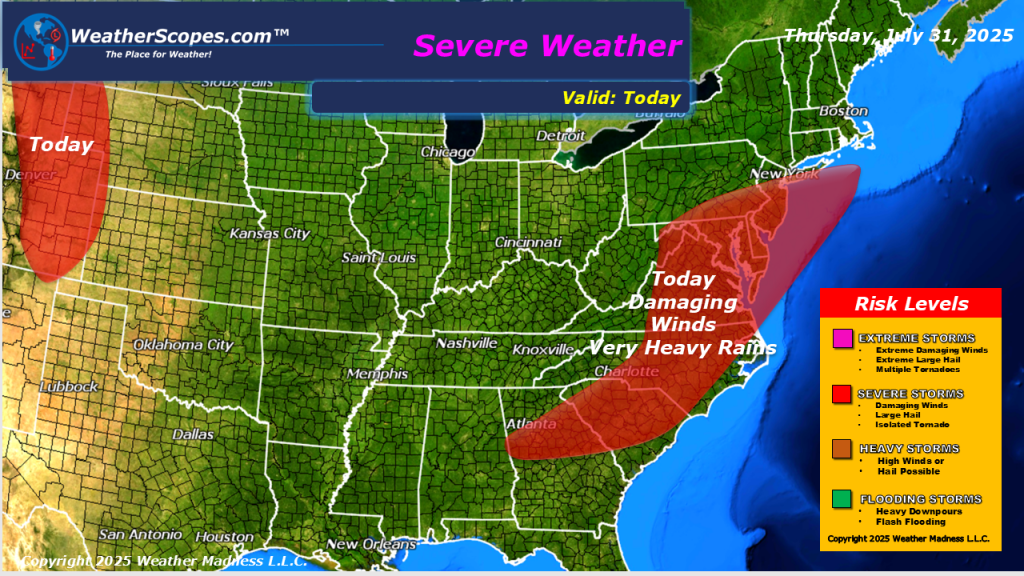 Today showers and thunderstorms will develop in parts of the Northeast and Mid-Atlantic states. These storms will bring some severe weather to the area with, damaging winds, hail, heavy rains, and a tornado or two is possible. Localized flooding will also be a major concern with the amount of rainfall some areas could pick up. More storms will develop out in the Central Plains today, and those look to be severe. Some cooler less humid weather already in the Midwest today as a cooler air mass moves into the area, and will move into the eastern part of the US tomorrow.