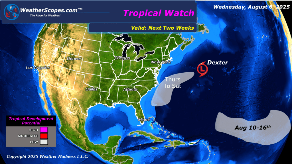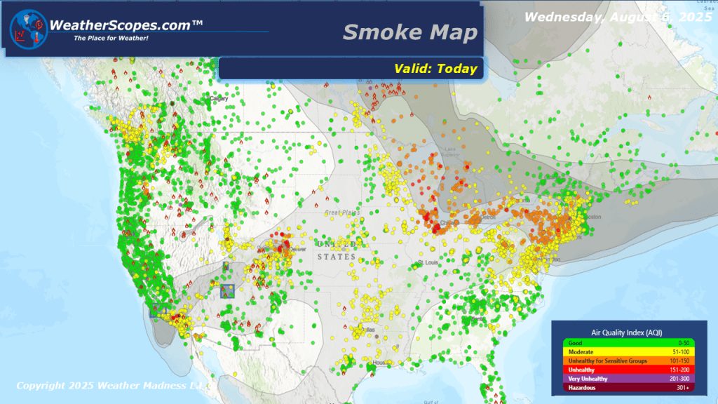 Today severe storms will move into the High Plains into the Upper Great Lakes, bringing the chance for heavy rains, hail, gusty conditions, and a tornado is possible. The Southeast continues to see rainy conditions and the possibility of localized flooding. The smoke from the Canadian wildfires still impacting most of the eastern US, and smoke from wildfires in the west impacting portions of the western US. Another low-pressure system could develop off the Eastern Seaboard over the next few days, as Dexter did days prior. Also keeping an eye out in the tropics to see if anything forms from these tropical waves off the coast of Africa.