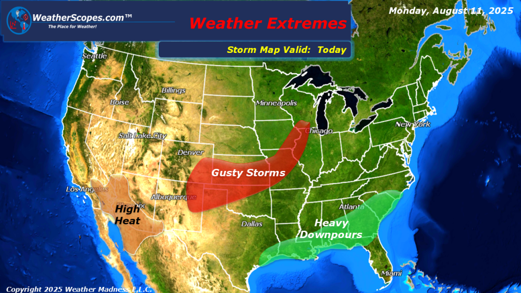 Today some storms will develop in the Plains into parts of the Midwest. These storms will bring some gusty conditions and heavy rains. Some of those storms have the potential to be severe. The Southeast will be dealing with some heavy downpours today, from a system that’s hanging out around Florida. The High Plains will be dealing with some poor air quality today from the Canadian wildfire smoke. Here we go today in the tropics. Tropical Storm Erin has just been named off the coast of Africa. While the models are predicting TS Erin to stay in the Atlantic, we will still need to watch to see if those tracks pan out.