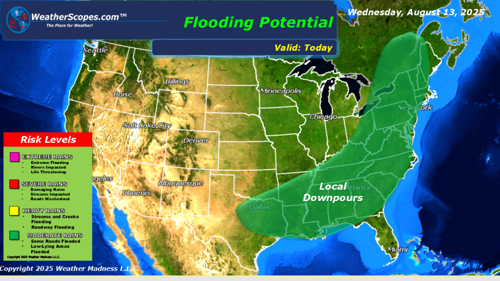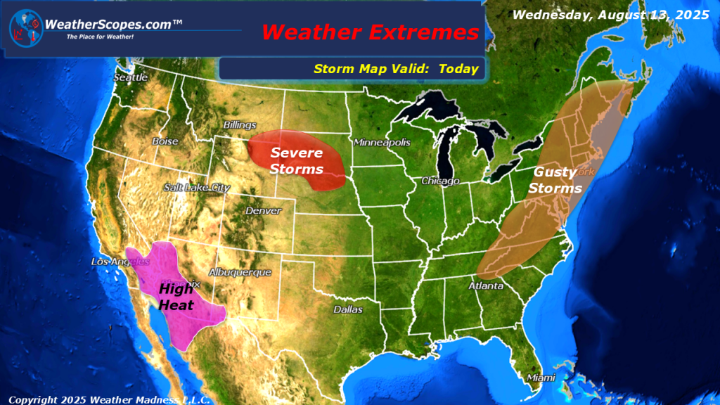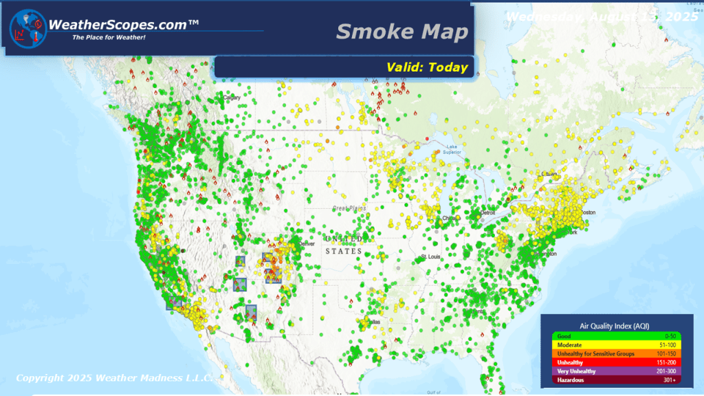 Today we will see storms in the Northeast down through the Mid-Atlantic States and into the Southeast. These storms will bring gusty conditions, heavy downpours, and some could become severe. Severe storms will develop out across The Plains today and later tonight. Some of those storms in the Plains could produce some hail and gusty conditions. We are still dealing with smoke conditions across most of the US. TS Erin still in the Atlantic moving to the West at 17mph. TS Erin could be close to the Leeward and Virgin Islands this weekend to cause an impact, but still watching to see if she tracks further north.