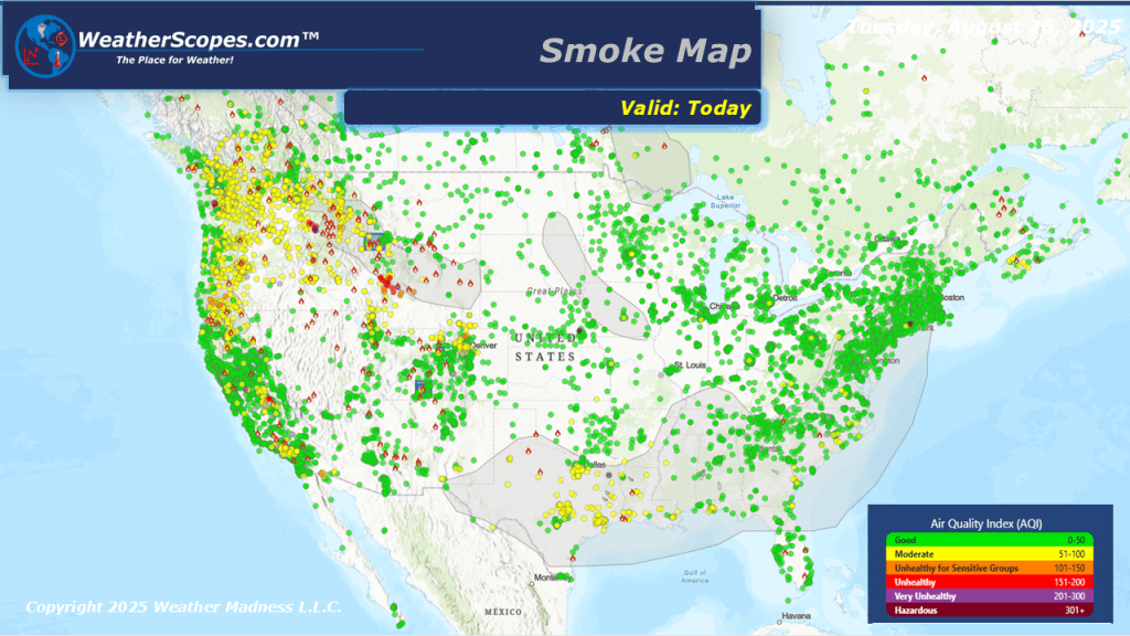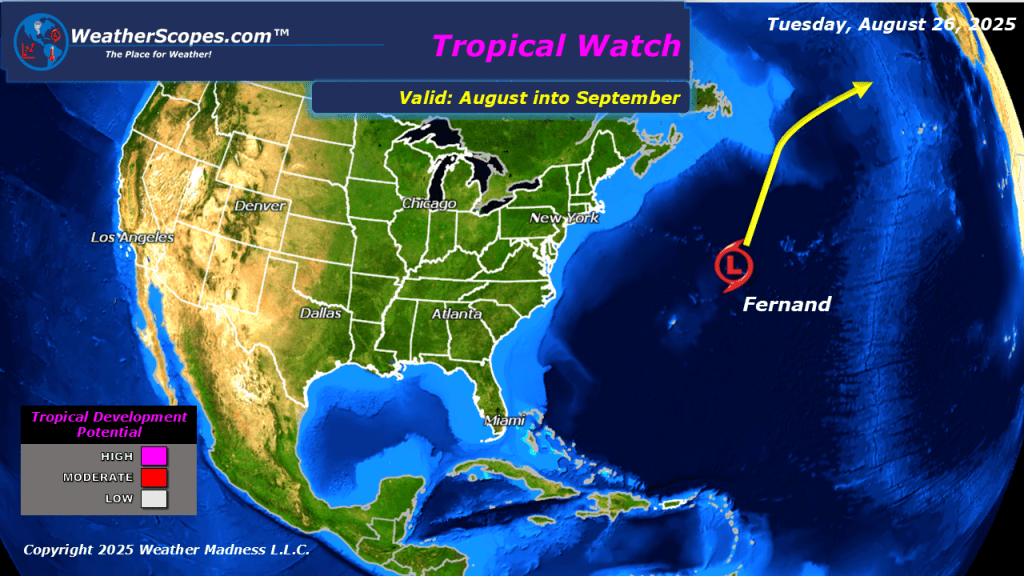 Today we will see some showers and thunderstorms in the Southern Plains, which will bring some heavy rains to the area, and the risk for some localized flooding. In the Four Corners States the monsoonal flow continues to produce daily showers and thunderstorms to the area. Flash flooding is a real concern to the area. The air quality in the Pacific NW is getting worse due to the dry conditions not helping the raging wildfires. Nothing going on in the tropics as of right now, with TS Fernand going out to sea.