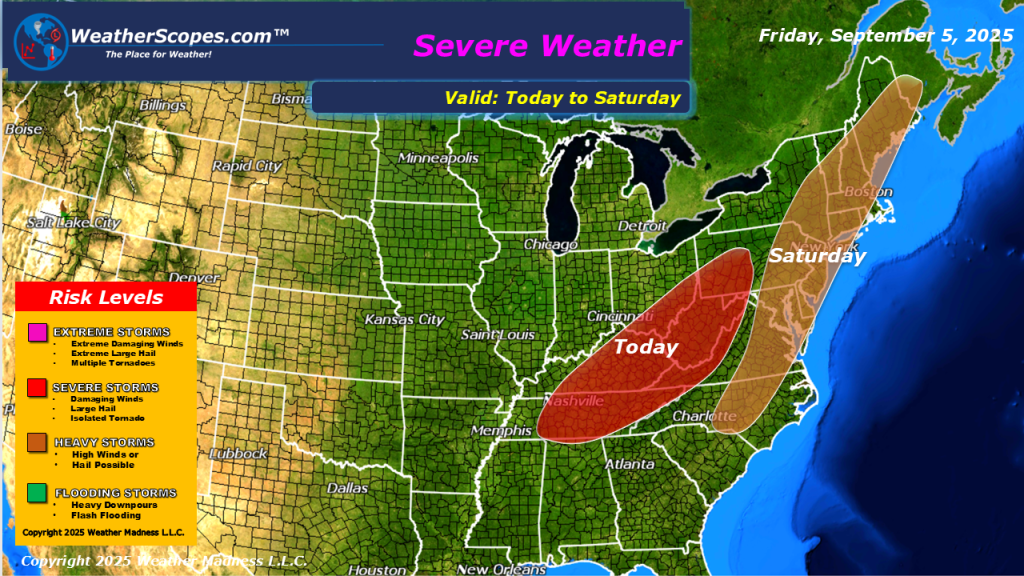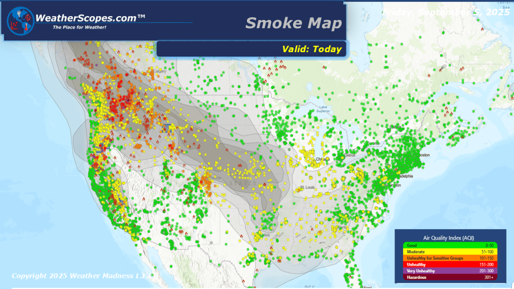 Today some severe storms look to develop in the Ohio and Tennessee Valley. That area could see some gusty conditions and hail. The Southwest look to see some downpours today which could lead to some localized flooding. The Pacific NW wildfires still burning and mixed with the Western Canada fires to create some poor air quality conditions in the area. Still watching an area in the Atlantic to form and drift away at sea.