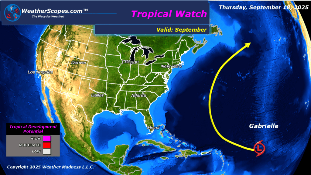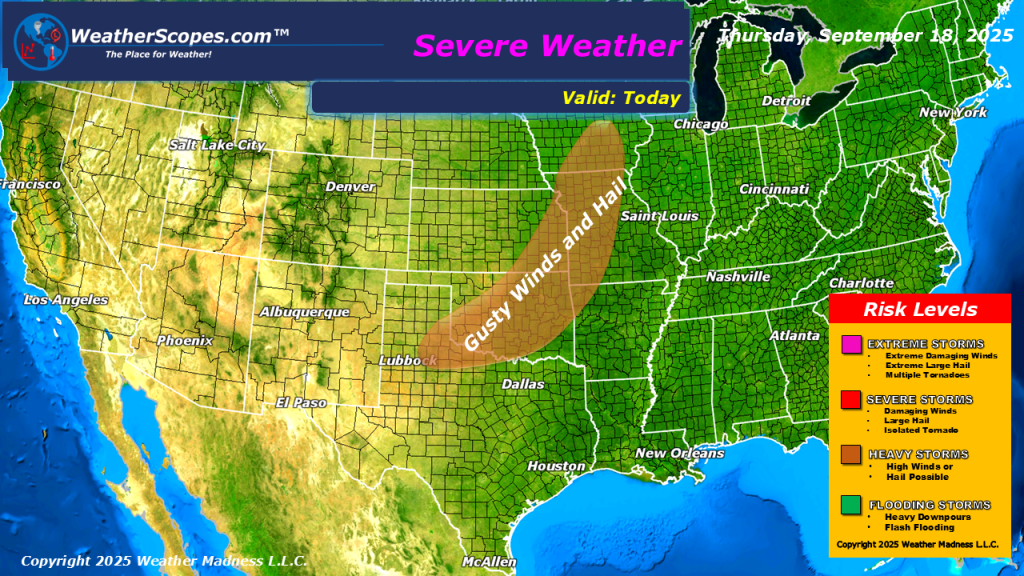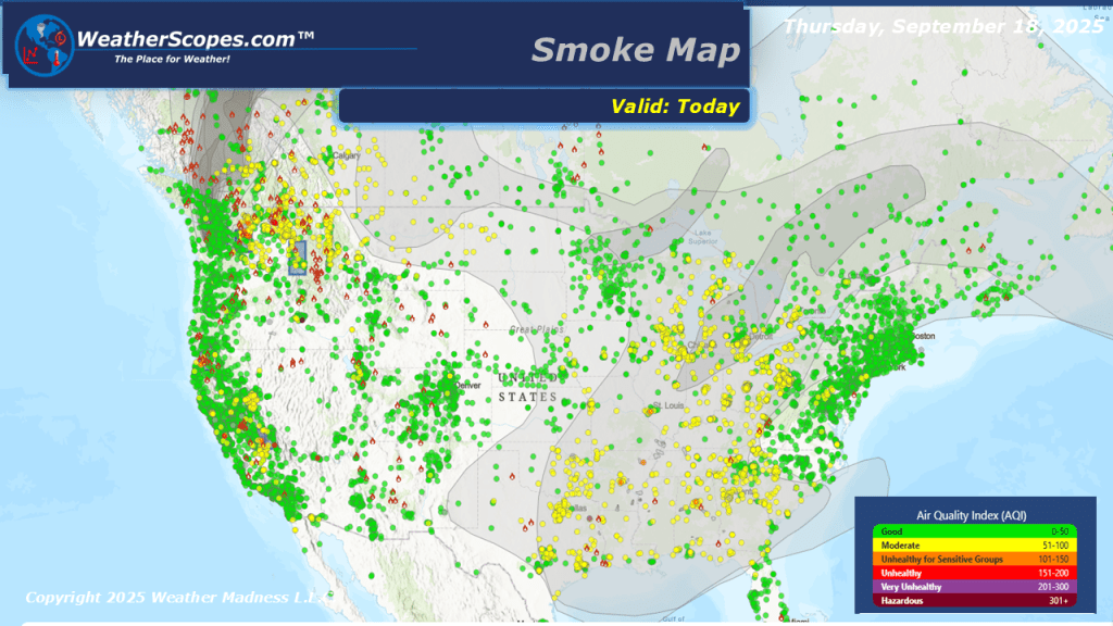 Today storms will develop out across the Plains into Iowa. Those storms will produce some gusty conditions and hail. Southern California into the Southwest will see some heavy rains and some localized flooding possible. Tropical Storm Gabriel has been named in the Atlantic. TS Gabriel still looking like it will not impact the US, but could impact Bermuda. Smoke and hazy conditions are still impacted the Pac NW and a majority of the Eastern US.