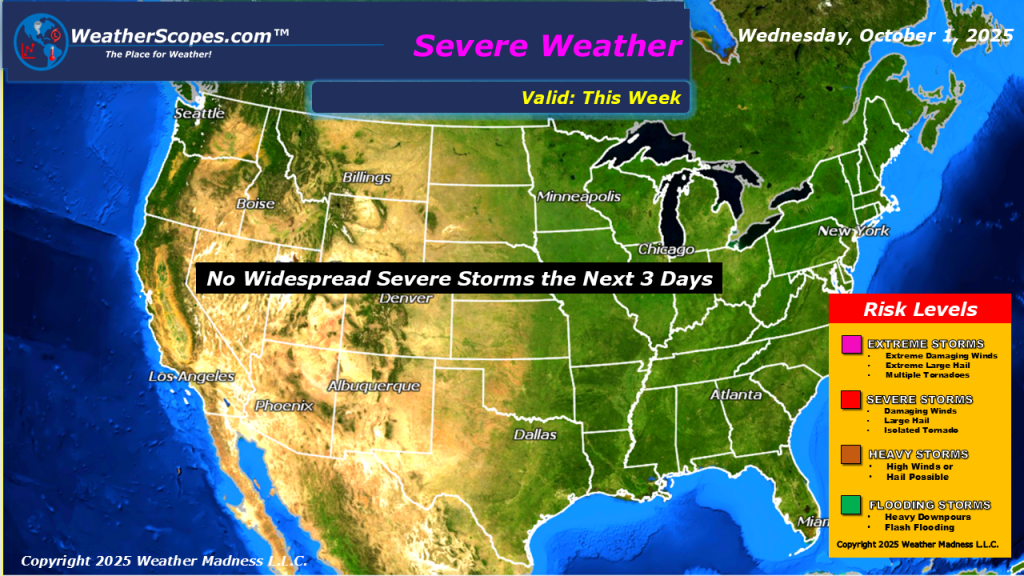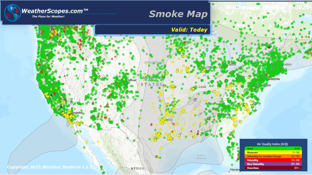 This morning we will see some showers and thunderstorms out in the Plains, and some showers in the Pacific NW, which has been helping put out those wildfires. Hurricane Imelda and Humberto are out in the Atlantic and away from the US. Hurricane Imelda a Cat 1 storm, could impact Bermuda today bringing some hurricane force winds and rains. We are still in a boring weather pattern and much of the US dealing with summer-like temperatures in October.