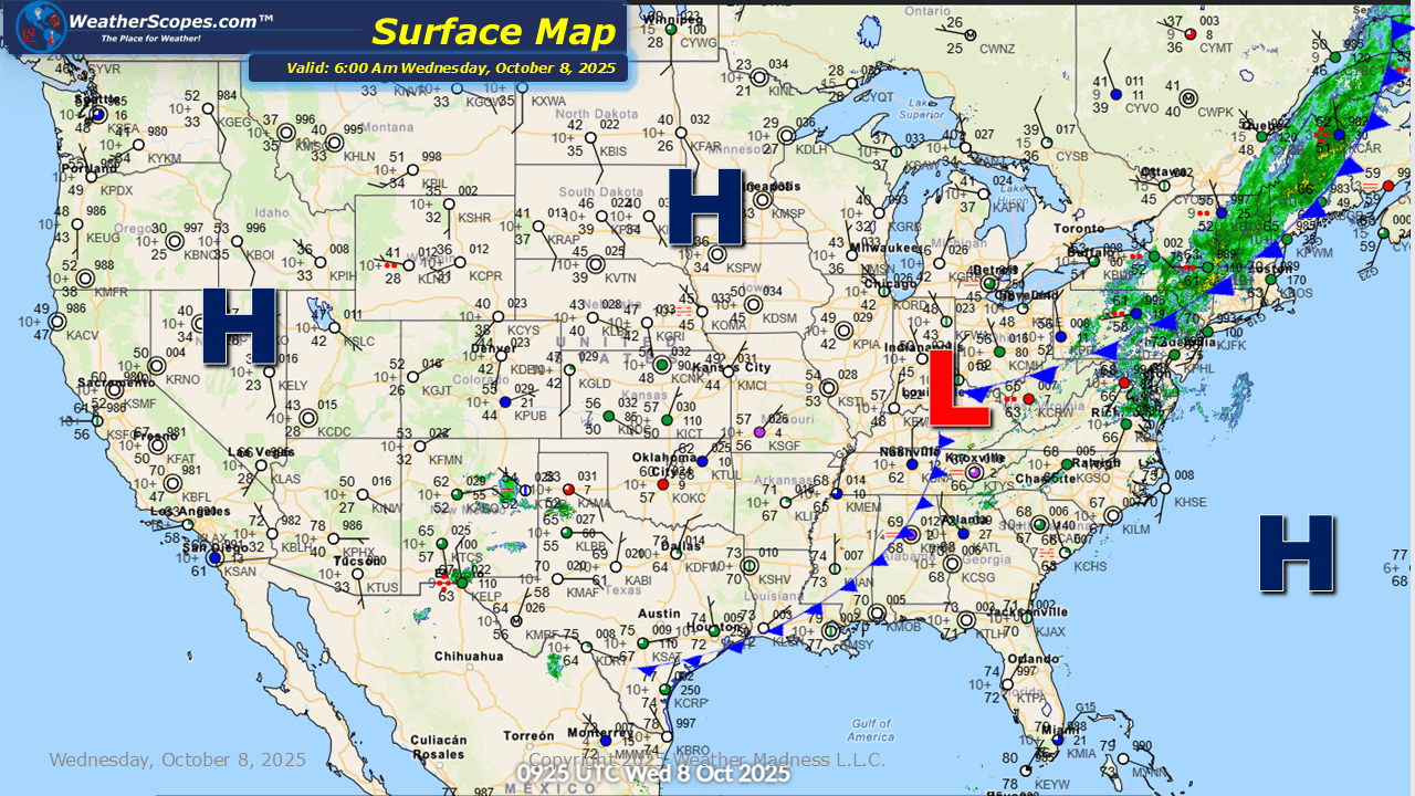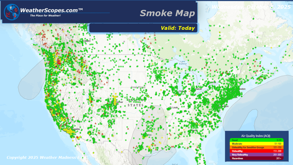 Today the Northeast and Mid-Atlantic states will see showers and thunderstorms move through the area out ahead of the cold front coming in. Tropical Storm Jerry has formed in the Atlantic, and shouldn’t impact the US. Wildfire smoke improving for much of the US with some areas in the Pacific NW still dealing with fires. Tomorrow into this weekend the Southwest will be dealing with some heavy rains in the area from the remnants of Hurricane Priscilla in the Pacific coming up.