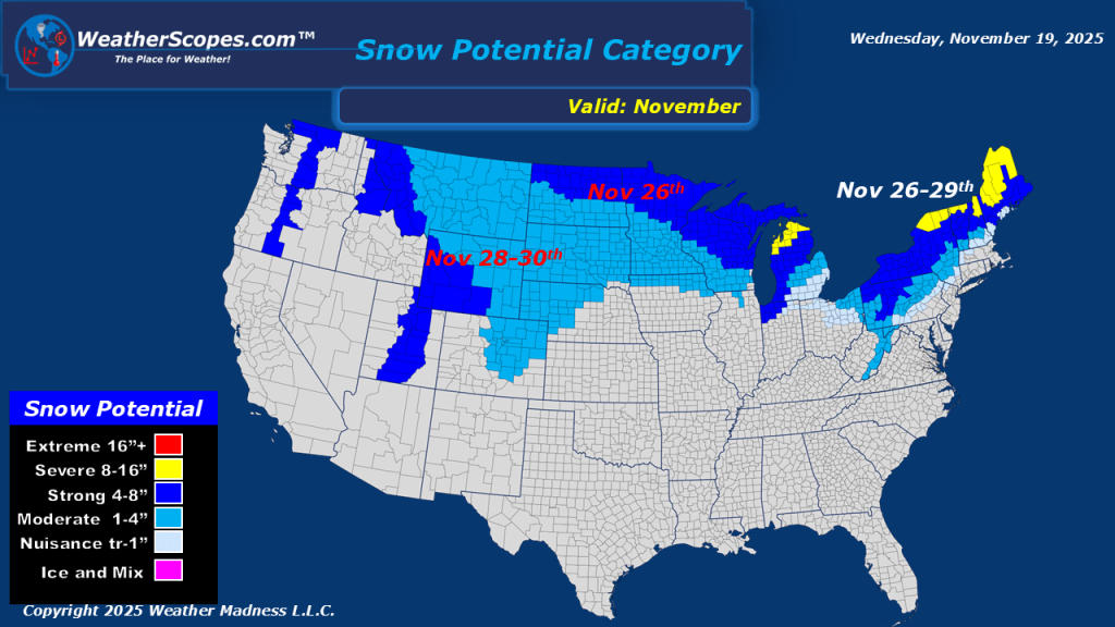 This morning we are seeing some showers come through the Philadelphia area. Today a chance for some severe weather to develop across parts of Texas into Oklahoma. That threat will continue tomorrow as well. These storms will be gusty at times, and also produce some heavy rains. Localized flooding could be a concern over the next two days. Out in the Southwest more rain through Friday, this rain could pose another risk for some localized flooding. Still watching some snow systems towards the end of the month in the northern half of the US.