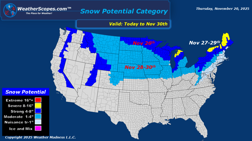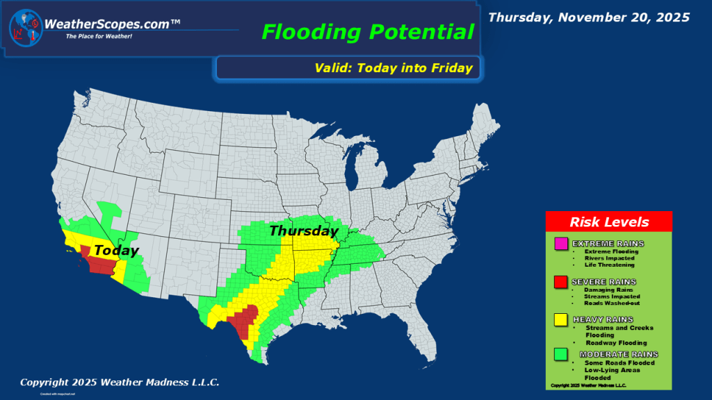 This morning we are already seeing showers and thunderstorms from Southern Illinois down into Texas. Some of the storms in Texas into Oklahoma could become severe, bringing damaging winds and hail. A tornado is not out of the question in Southern Texas. With these storms parts of Texas, Oklahoma, and Missouri could see some localized flooding from the amount of rain these storms will produce. Southern California into AZ and NM will also see some rain today, and could see some localized flooding yet again from all the rain the area has seen over the past few days.