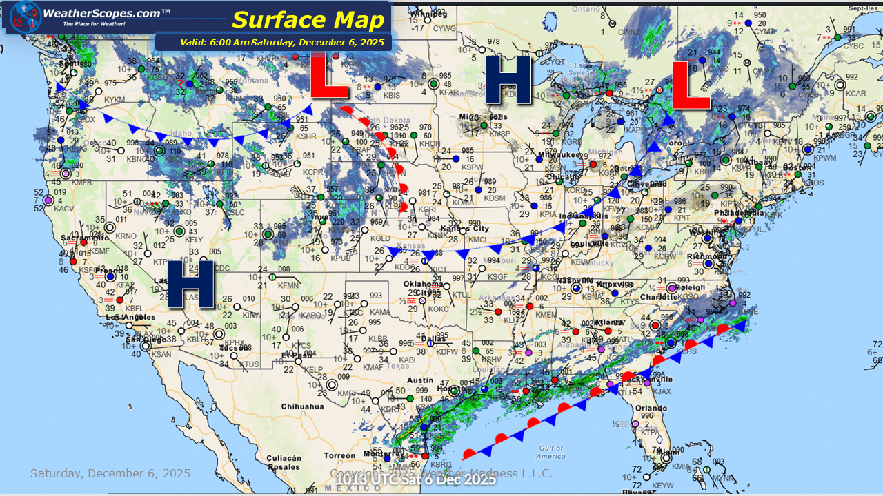 Today’s weather brings a mix of conditions across the country, with showers expected across the Southeast while the Rockies continue to see snow in the higher elevations. This morning through today and into tomorrow, a quick-moving clipper system will sweep through the Plains and into the Great Lakes, and Northeast bringing 1–4 inches of accumulating snow and creating some slippery travel. The interior portions of the Northeast will pick up additional lake-effect snow, with totals ranging from a light coating to around 2 inches. Throughout all of this, cold temperatures will continue to grip the Plains, Midwest, and Northeast, reinforcing the wintry feel across much of the region.